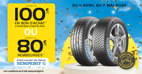 Du 06 Mars au 01 Avril 2023, jusqu’à 150€ en bon d’achat ou 120€ remboursés* pour l’achat de pneumatiques de […]